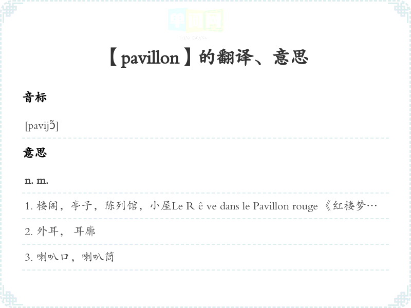 【pavillon】是什么意思、字义解释