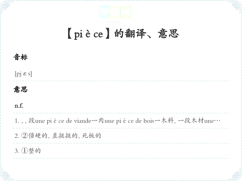 【pièce】是什么意思、字义解释