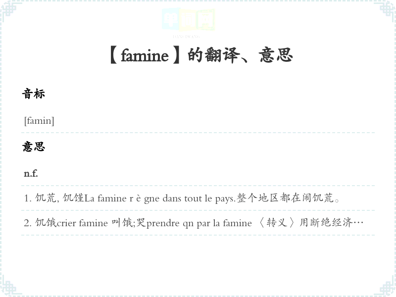 【famine】是什么意思、字义解释