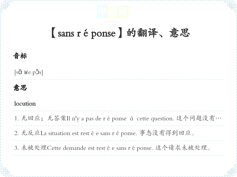 【sans réponse】是什么意思、字义解释