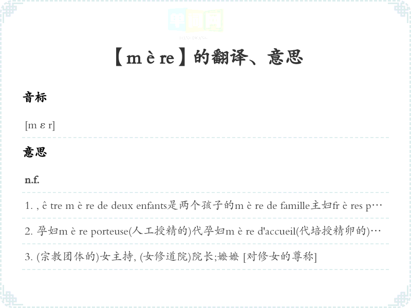 【mère】是什么意思、字义解释