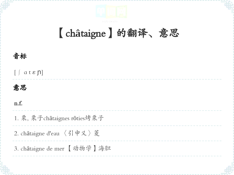 - 2. La châtaigne sèche, brillante, goût délicieux et facile à entreposer.