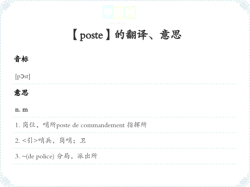 【poste】是什么意思、字义解释