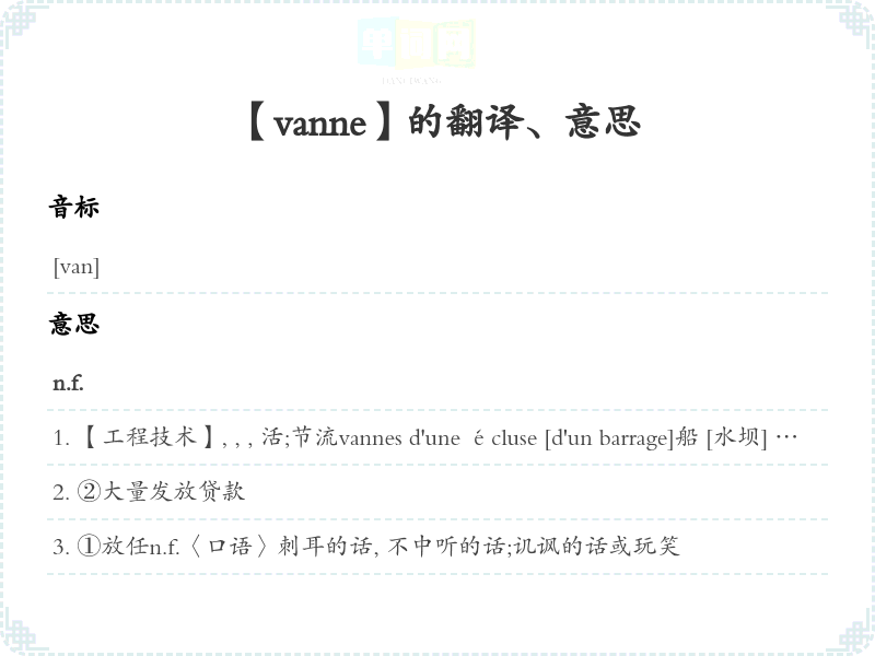 【工程技术】, , , 活;节流vannes d'une écluse [d'un barrage]船 [水坝] 的ouvrir [fermer] une vanne 开 [关]ouvrir les vannes