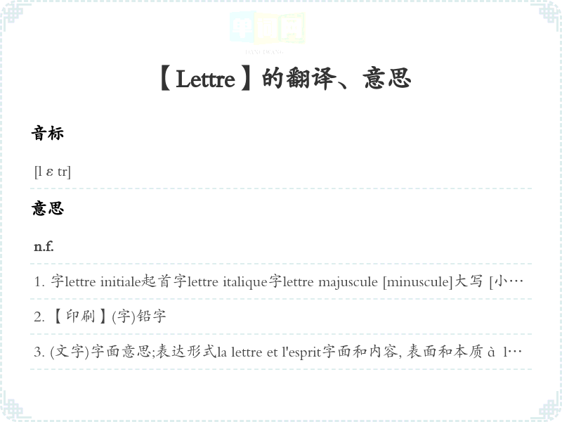 【Lettre】是什么意思、字义解释