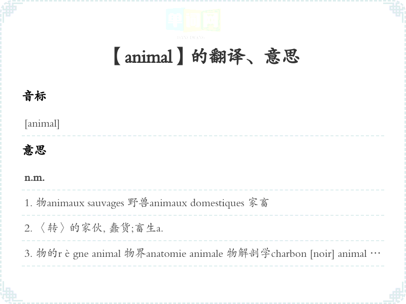 【animal】是什么意思、字义解释