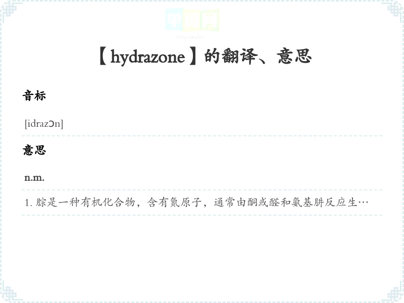 【hydrazone】是什么意思、字义解释