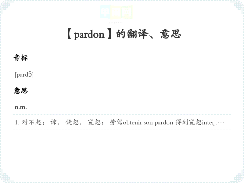 【pardon】是什么意思、字义解释