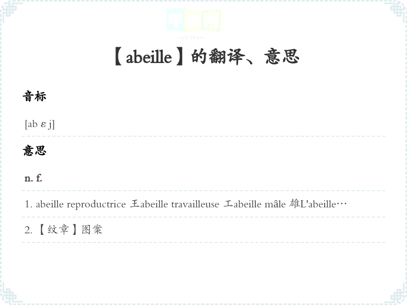 abeille reproductrice 王abeille travailleuse 工abeille mâle 雄L'abeille bourdonne. 嗡嗡叫。