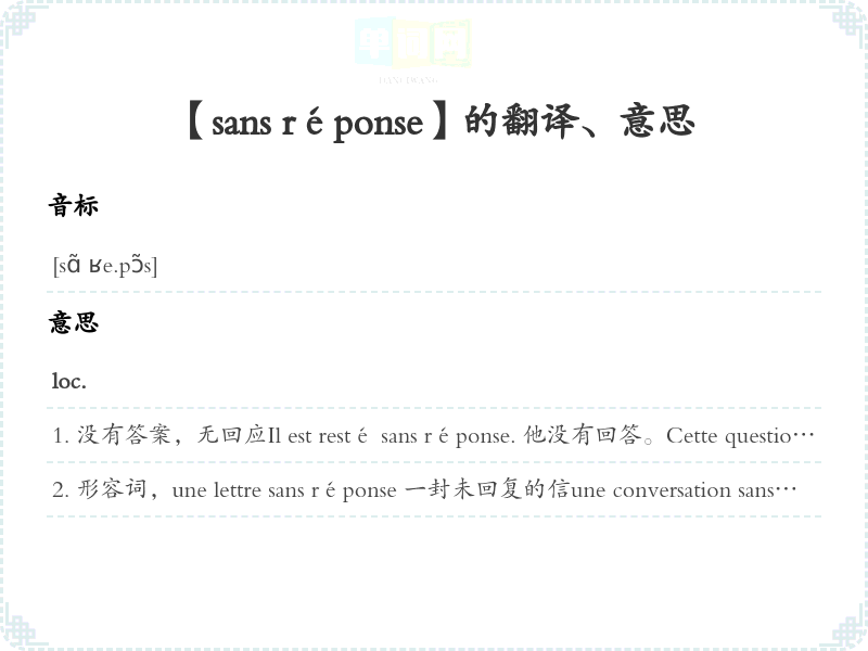 【sans réponse】是什么意思、字义解释