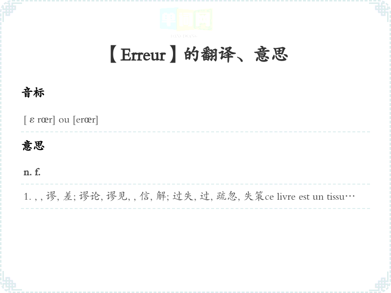 【Erreur】 :、 形容词变化:、 近义词:、 反义词: 词