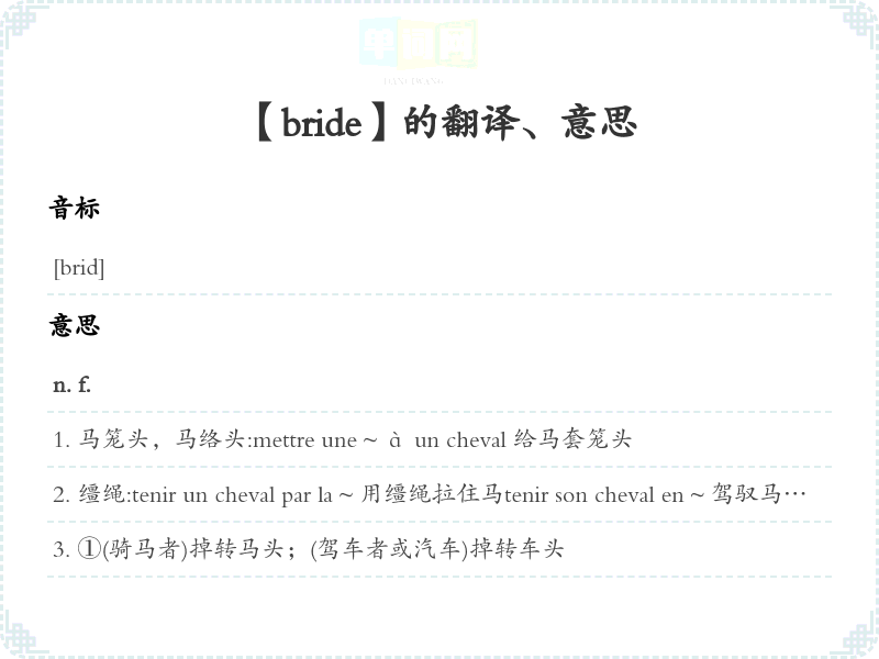 【bride】是什么意思、字义解释