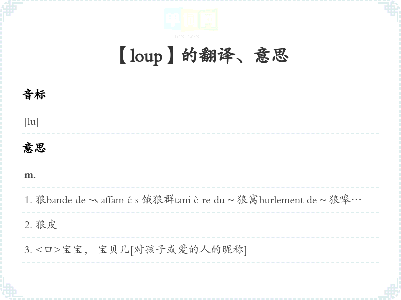【loup】 联想、 近义词、 同音、近音词 联想词