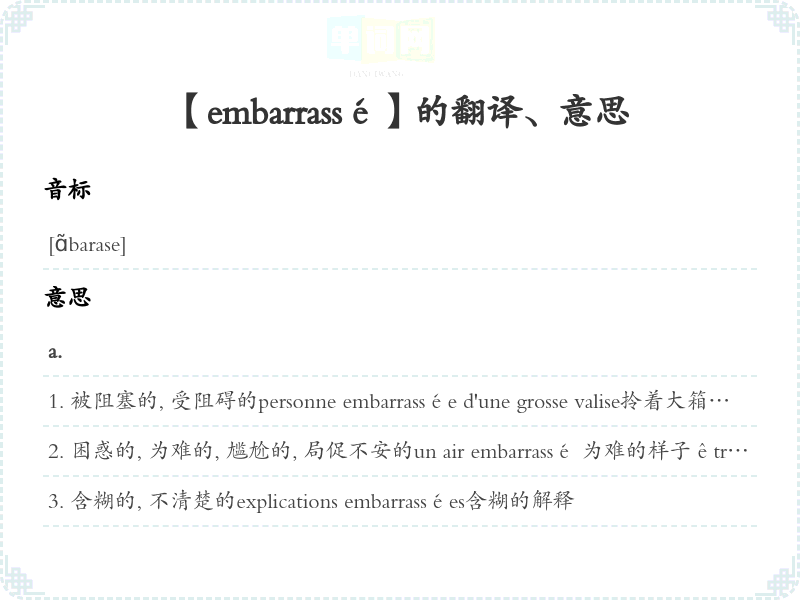 【embarrassé】是什么意思、字义解释