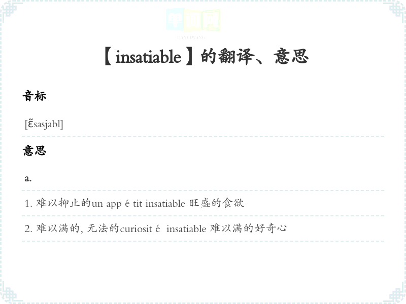 【insatiable】是什么意思、字义解释