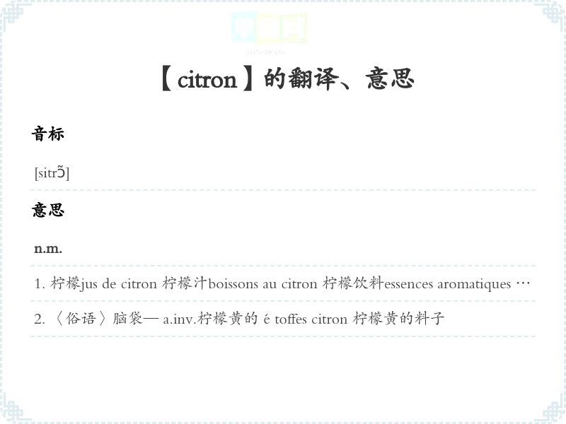 【citron】是什么意思、字义解释