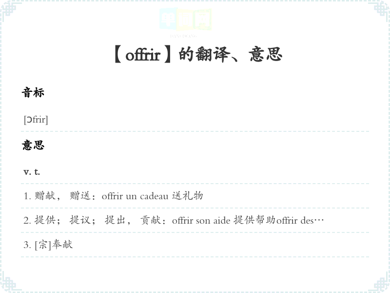 【offrir】是什么意思、字义解释
