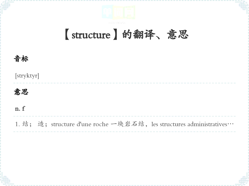 【structure】 助记:、 联想:、 近义词:、 反义词: 联想词