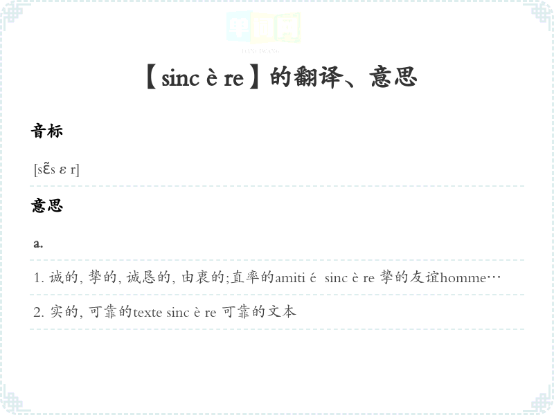 【sincère】是什么意思、字义解释