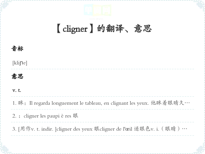 眯:Il regarda longuement le tableau, en clignant les yeux. 他眯着眼睛久久地看这幅。