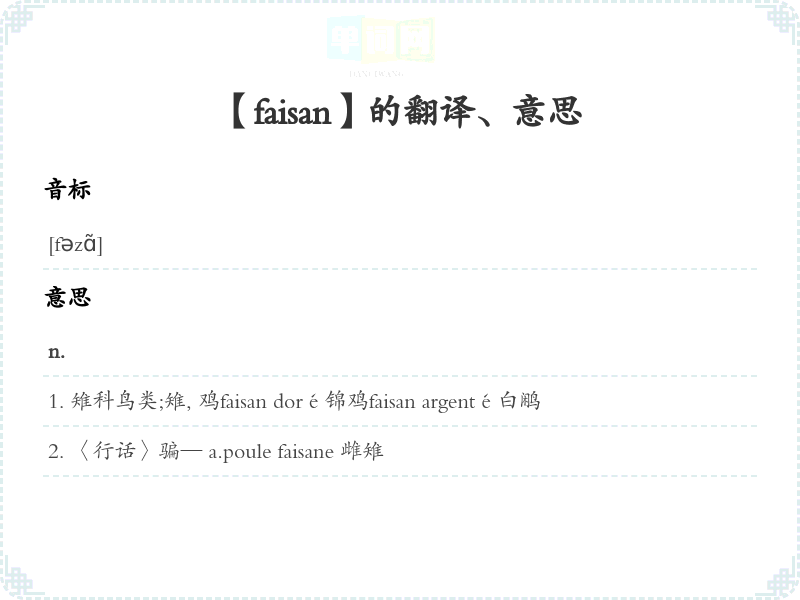 【faisan】是什么意思、字义解释