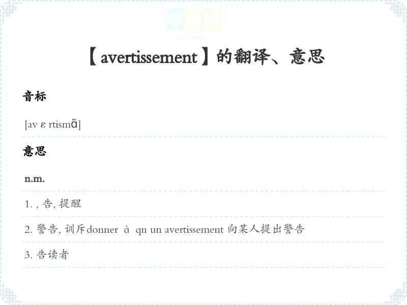 警告, 训斥donner à qn un avertissement 向某人提出警告