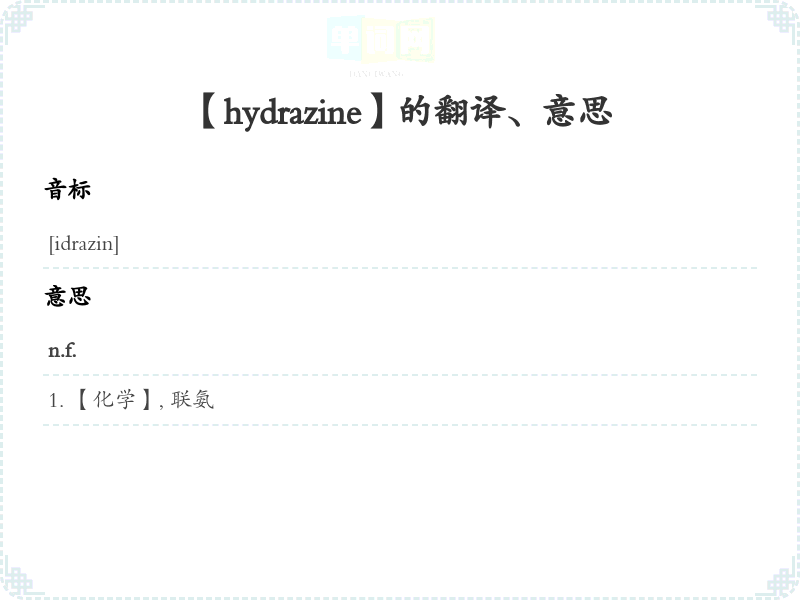 【hydrazine】是什么意思、字义解释