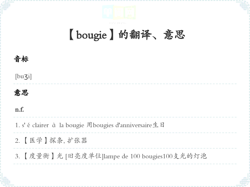 【bougie】是什么意思、字义解释