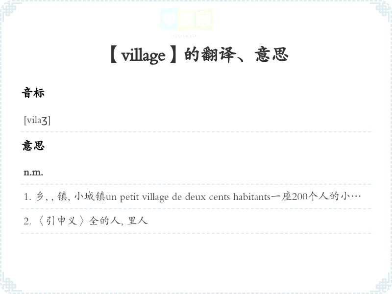 【village】是什么意思、字义解释