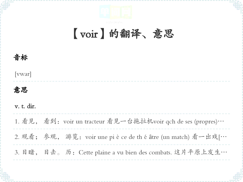 【voir】是什么意思、字义解释
