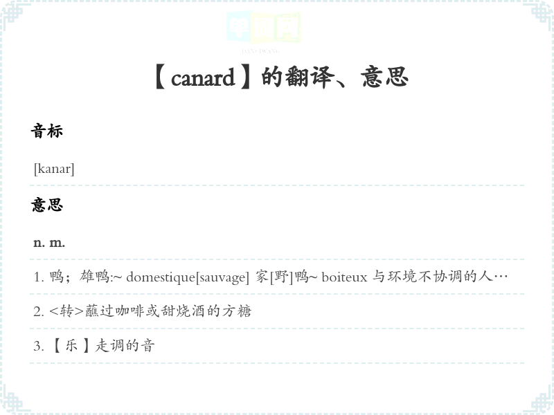 【canard】是什么意思、字义解释
