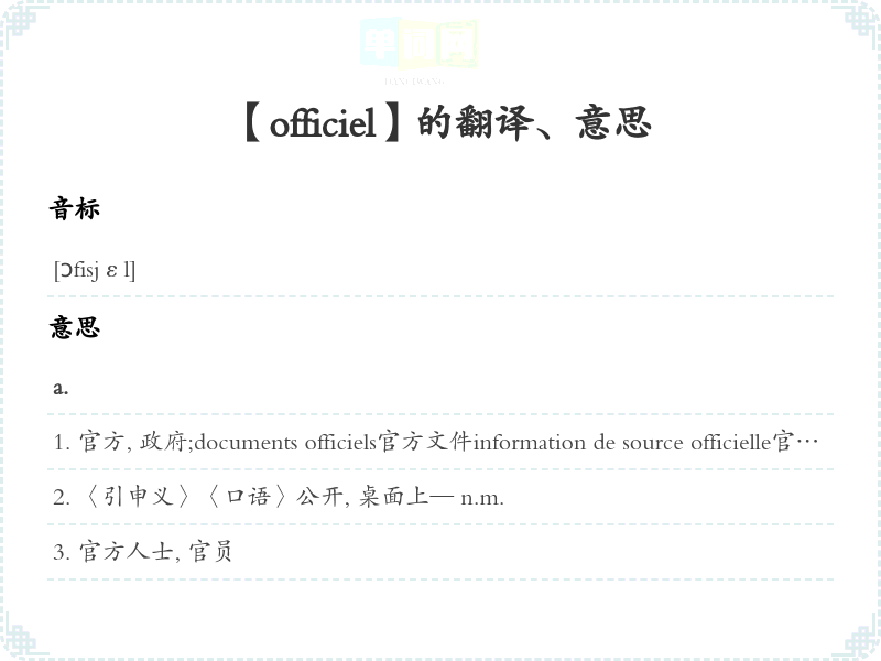 【officiel】是什么意思、字义解释