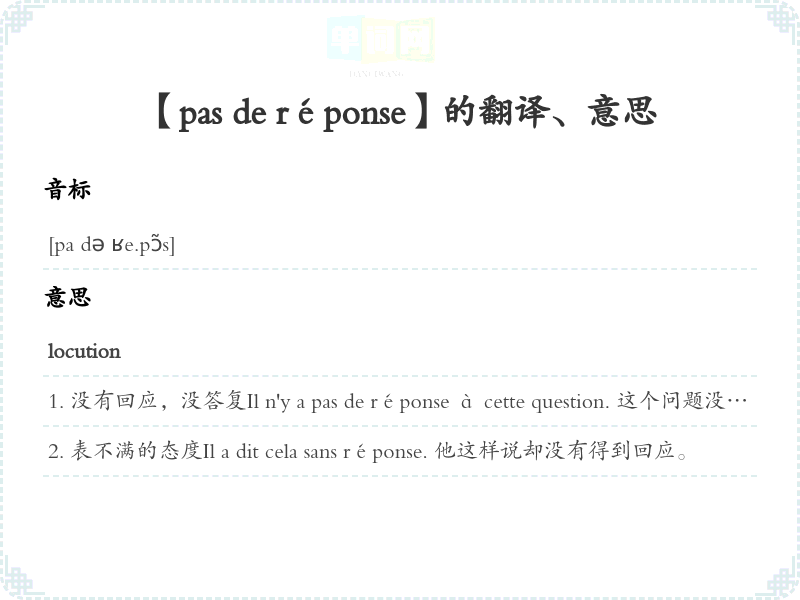 【pas de réponse】是什么意思、字义解释