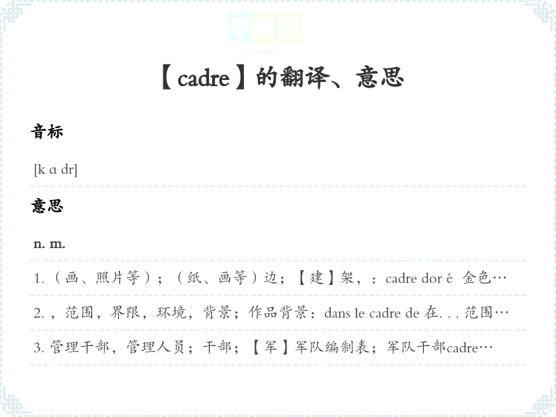 【cadre】是什么意思、字义解释