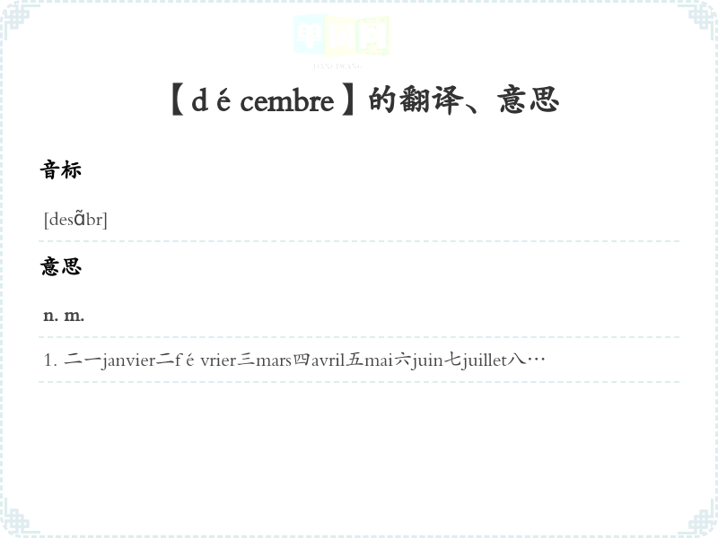 二一janvier二février三mars四avril五mai六juin七juillet八aoûtseptembreoctobre一novembre二décembreeg :Nous sommes en novembre. -Quelle date sommes-nous ? / Le combien sommes-nous? -Nous sommes le 1er janvier.