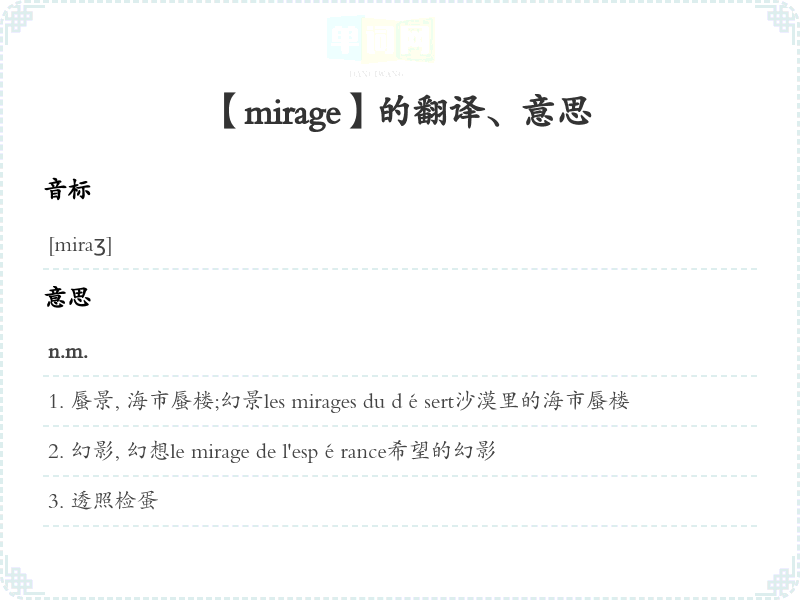 蜃景, 海市蜃楼;幻景les mirages du désert沙漠里的海市蜃楼