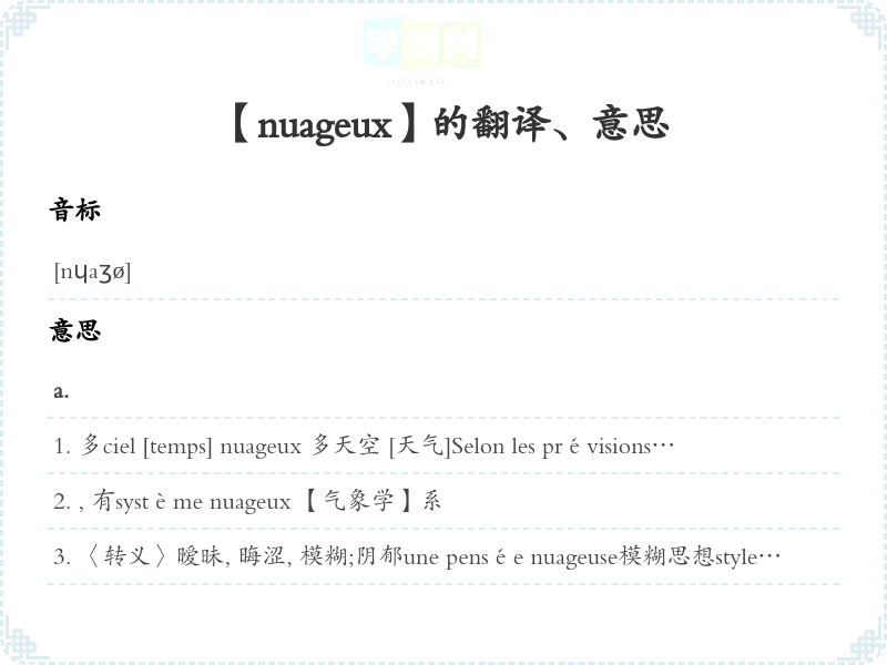【nuageux】是什么意思、字义解释