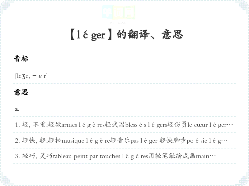【léger】是什么意思、字义解释