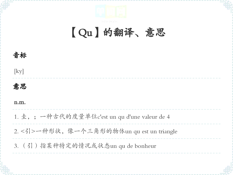【Qu】 助记:、 词根:、 联想、 名词化:、 词化:、 形容词化:、 近义词、 反义词、 同音、近音词 联想词