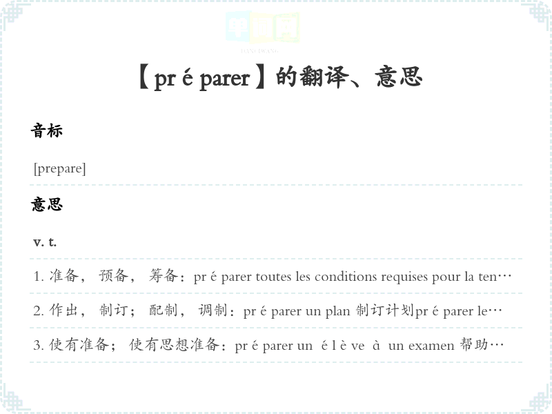 【préparer】是什么意思、字义解释