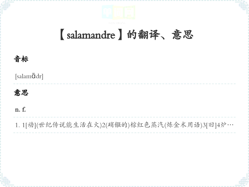 【salamandre】是什么意思、字义解释