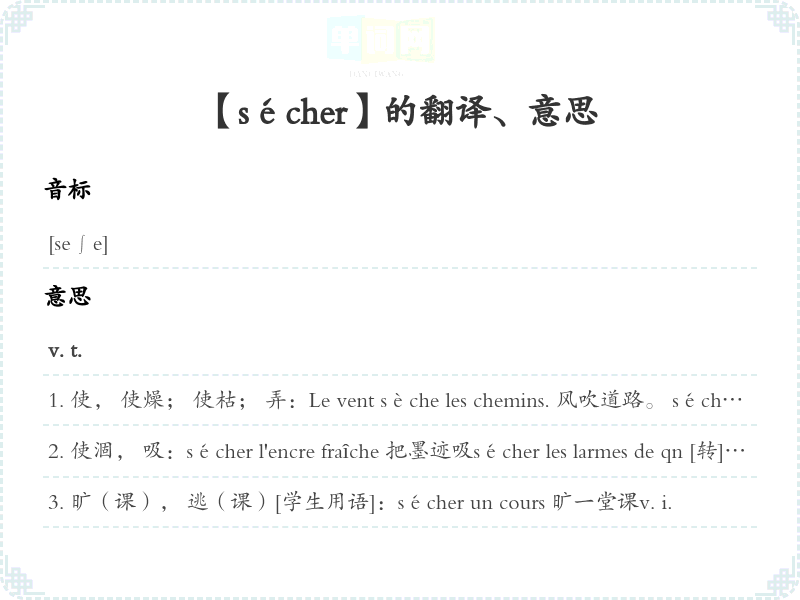 【sécher】是什么意思、字义解释