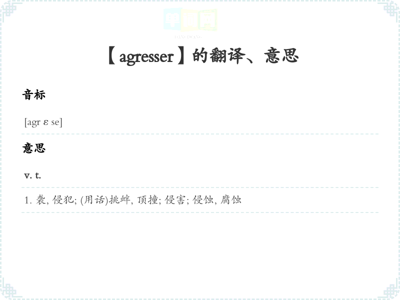 【agresser】是什么意思、字义解释