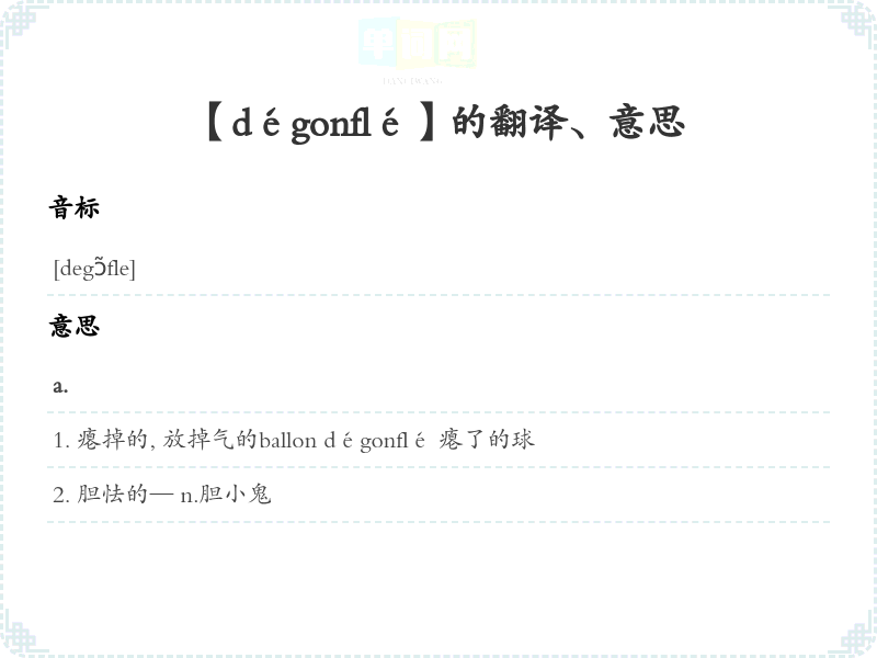 瘪掉的, 放掉气的ballon dégonflé 瘪了的球