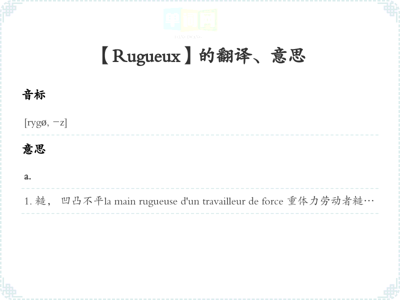 【Rugueux】 联想:、 近义词:、 反义词: 联想词