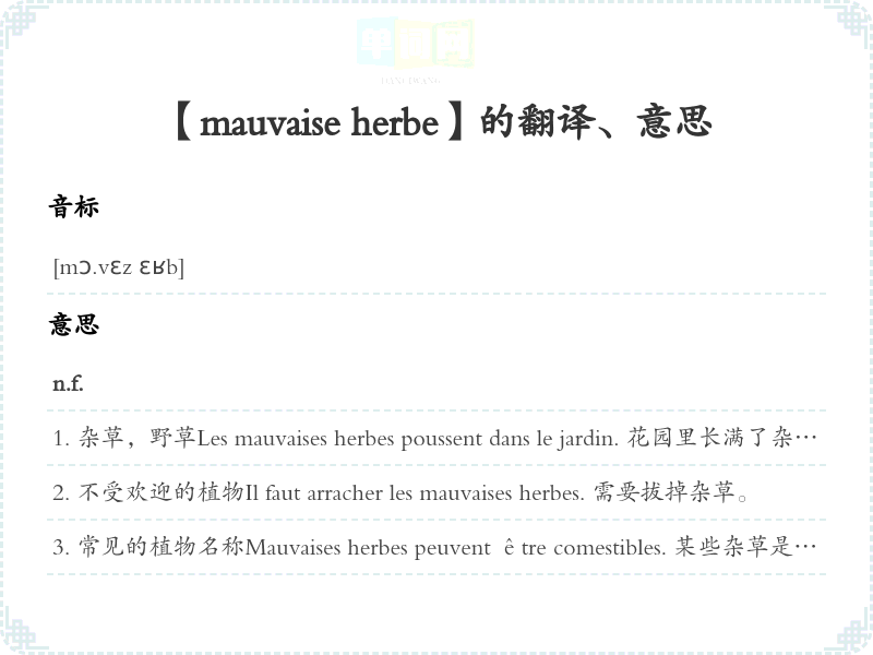 【mauvaise herbe】是什么意思、字义解释