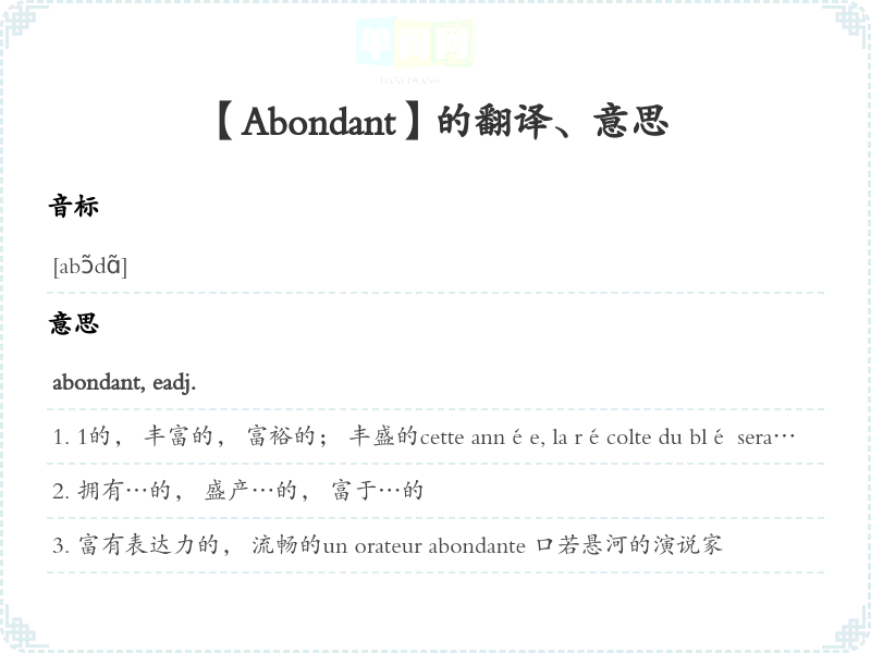 【Abondant】是什么意思、字义解释