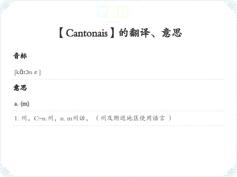 【Cantonais】是什么意思、字义解释
