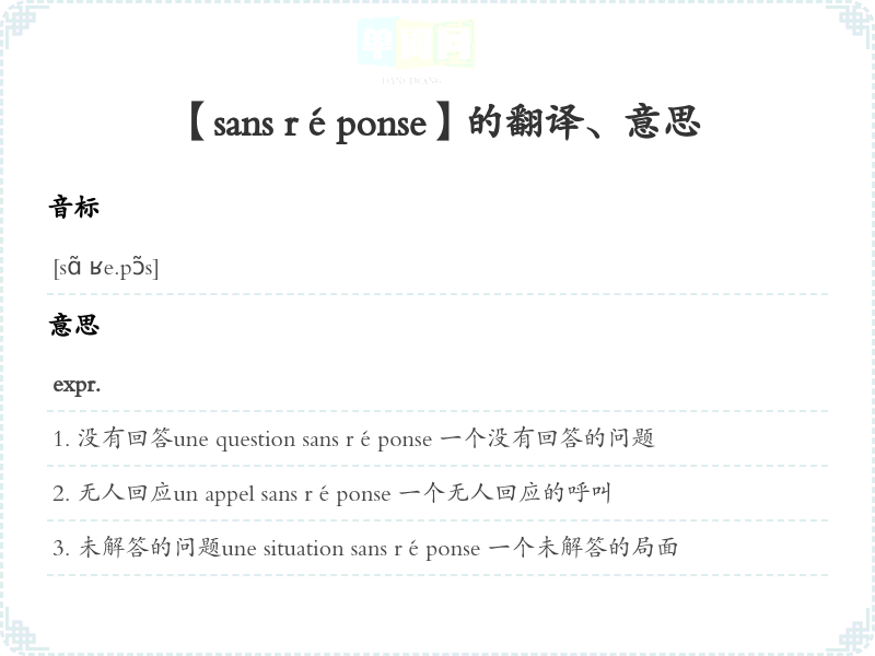 1.répondre v.i. 回答,响应;réponse n.f. 回答;无回应的状态