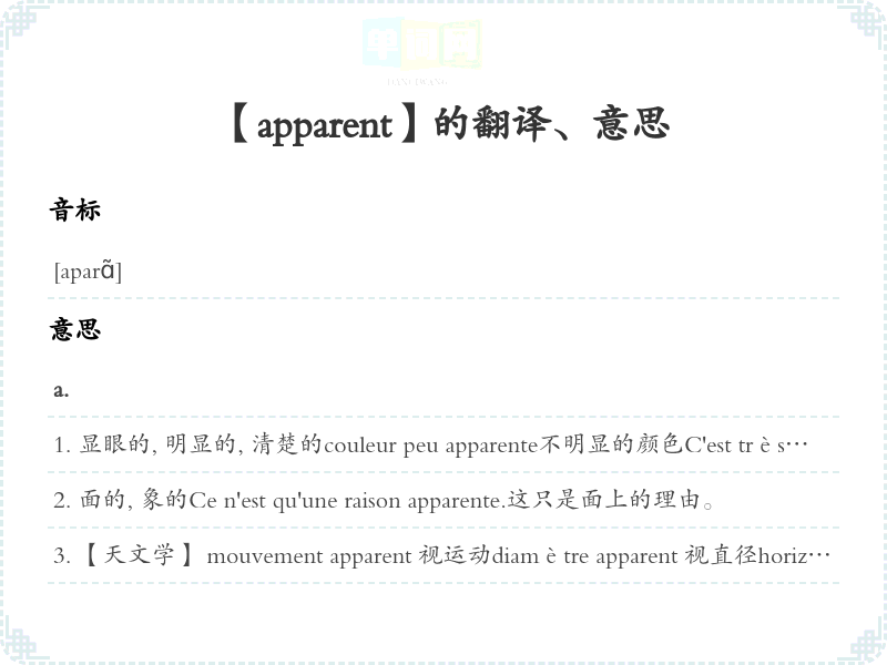 【apparent】是什么意思、字义解释